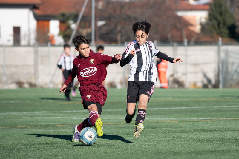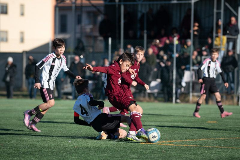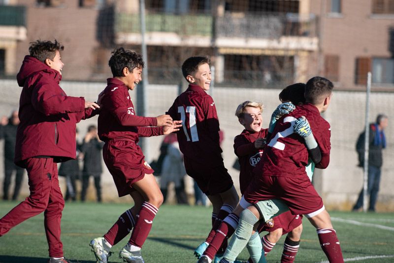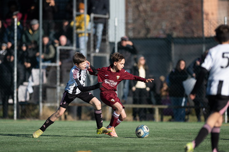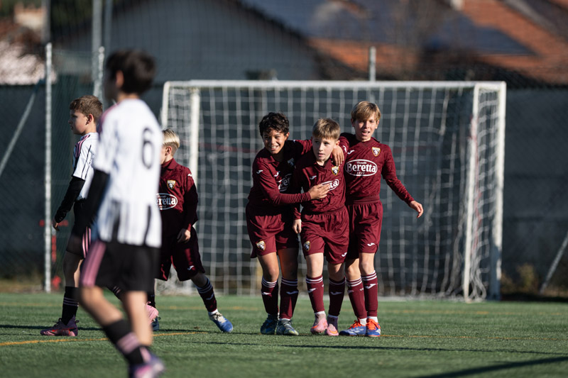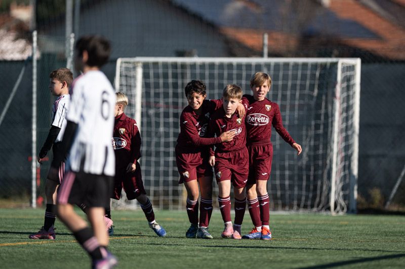 La partita di cartello dei gironi Gold è stato il derby della Mole, e non poteva essere diversamente considerando il valore di questa sfida anche a livello di scuola calcio. A tante aspettative è seguita una partita bella per intensità e voglia, da applausi per il fair play in campo e tra le panchine, ma con un verdetto chiaro: ha vinto il Torino con pieno merito. I granata hanno approcciato meglio la partita, occupando bene il campo in modo da arrivare sempre primi sul pallone. Dopo un paio di sgroppate di Bergamin sulla destra, già al 10’ è arrivato il gol che risulterà, a conti fatti, decisivo: merito dell’opportunismo di Riccardo Massaro, lesto a ribadire in porta la respinta di Zuccalà sul diagonale di Maruca. I granata hanno legittimato il vantaggio con una serie di occasioni: un altro tentativo di Massaro ben parato, un sinistro di capitan Di Francesco fuori di poco, una bomba di Souza sui guantoni del portiere bianconero, l’incrocio dei pali scheggiato da Cascini. Dall’altra parte ci ha provato Rosso su punizione e un paio di angoli hanno creato mischie pericolose, troppo poco per ribaltare il derby.